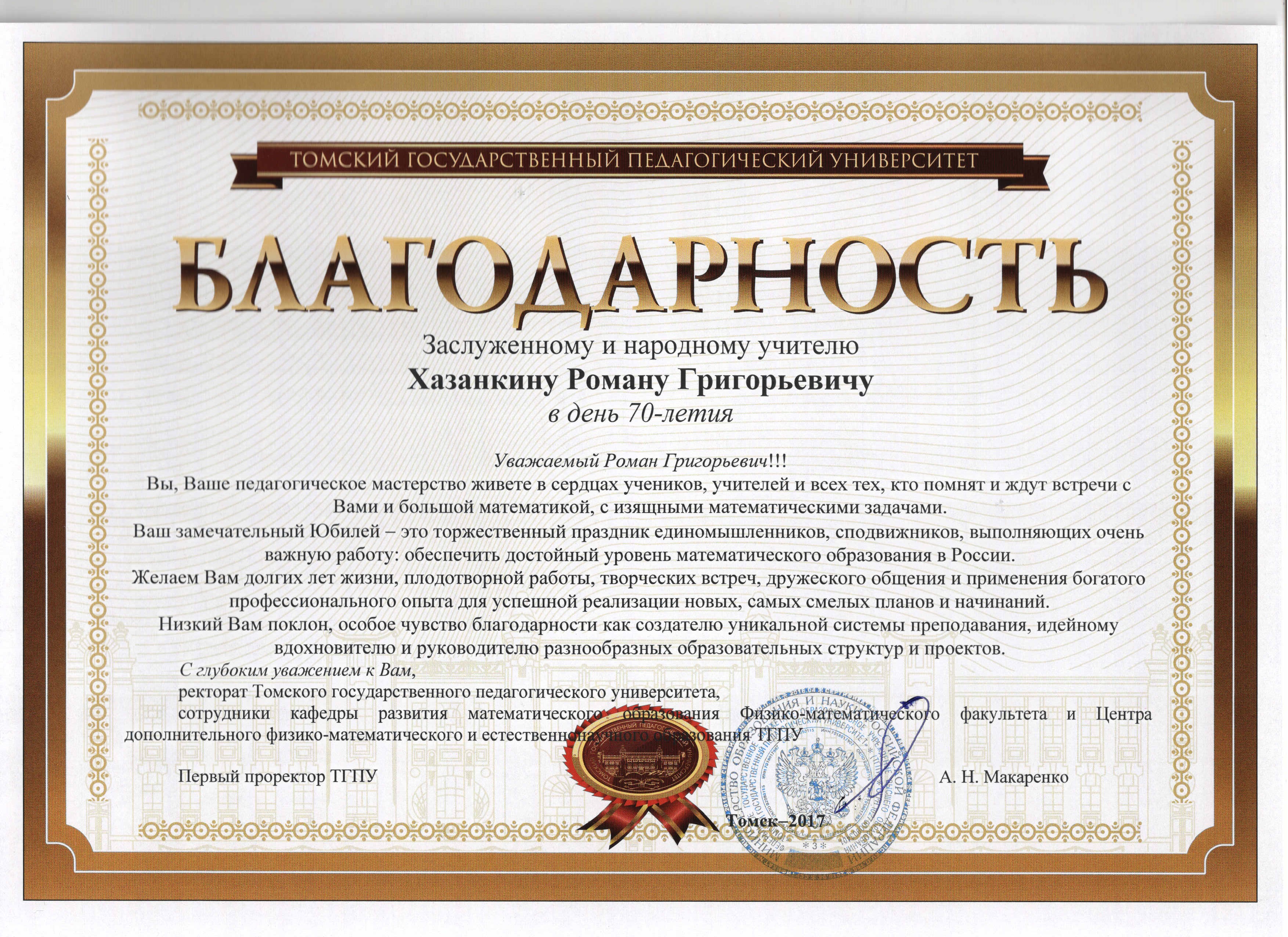 Благодарность ТГПУ (по ссылке):