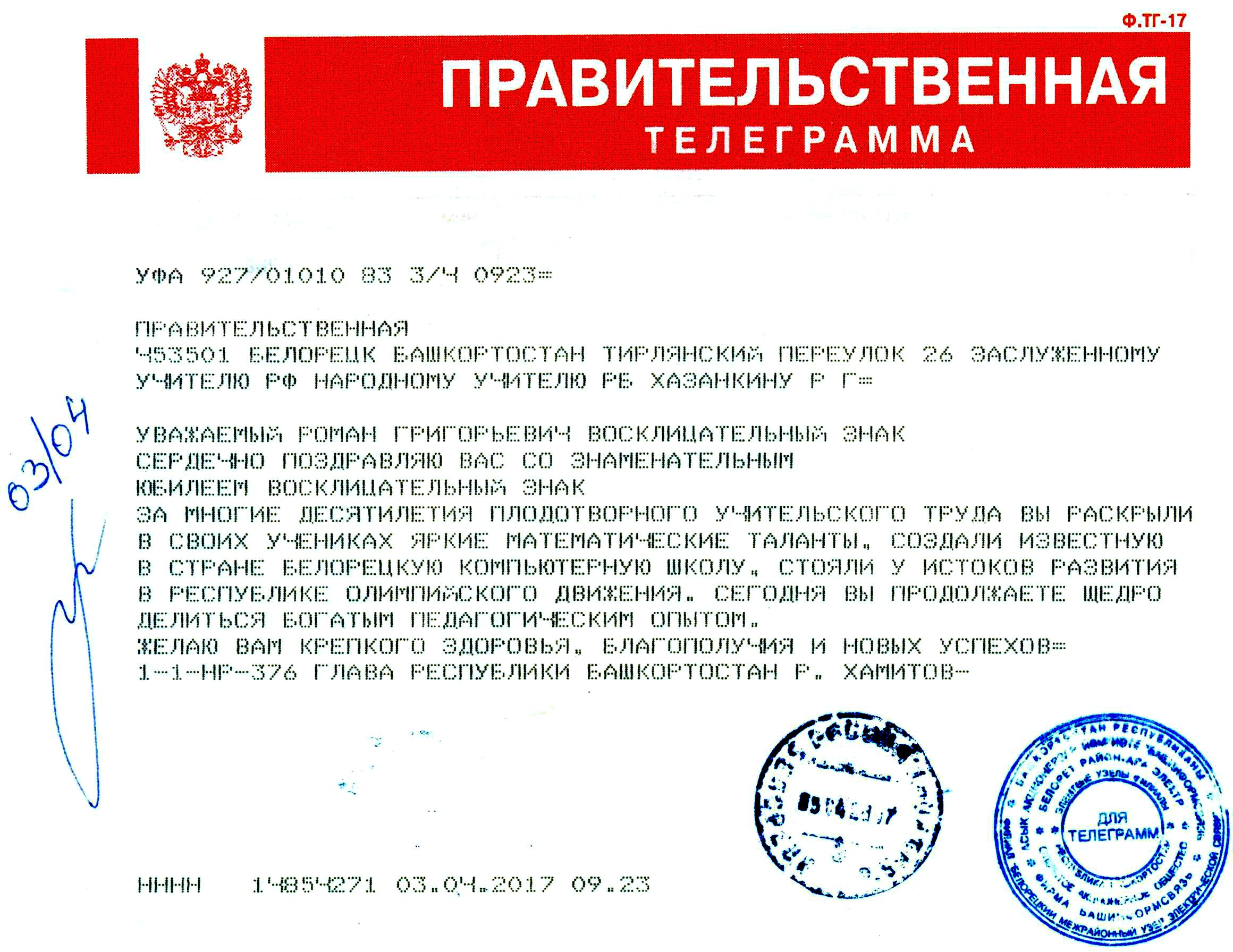 Дорогие мои ученики — и те, кому сегодня за 60 и те, кому сегодня 18, и те, кто в этом промежутке — тоже! Спасибо Вам за ваши тёплые поздравления и замечательные пожелания в честь моей юбилейной даты. Мне это очень приятно! 15 апреля у нас в гостях побывали выпускники 1989 года, собрались большой компанией, принесли красивейшие букеты цветов, замечательную стенгазету (!!!) и надарили кучу подарков. Сегодня им по 45 лет, а в глазах у меня — ребятишки! Вспоминали годы учёбы, рассказывали о том, как помогли им в жизни и уроки математики, и всё, что было вокруг этих уроков. Хочу сказать в ответ — будьте здоровы и счастливы, берегите себя и своих близких, цените школьную дружбу! Я всегда любил вас и любовался вами — у меня всегда были самые умные и самые красивые ученики! Спасибо, что помните об этом! Пишите иногда — это согревает! Ваш Р.Г.