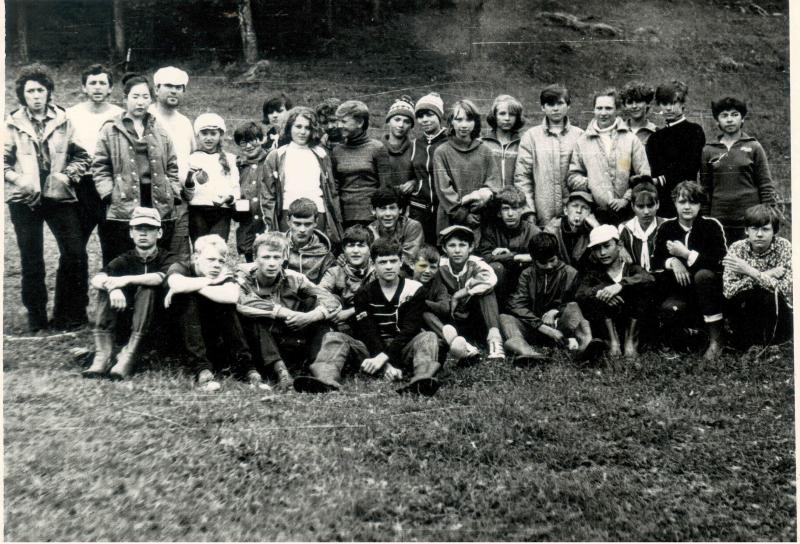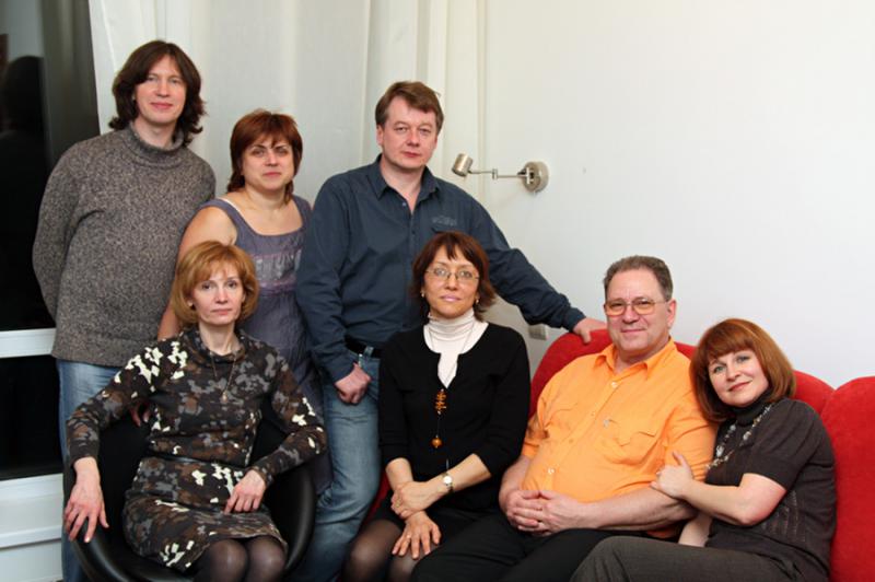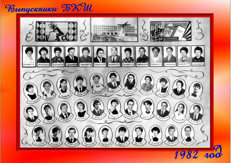 С выпускниками 1982 года. Сидят: Людмила Ионова, Лилия Салимова, Роман Григорьевич, Вероника Малова (выпуск-81). Стоят: Дмитрий Беляков, Ольга Оголихина, Василий Тетенков